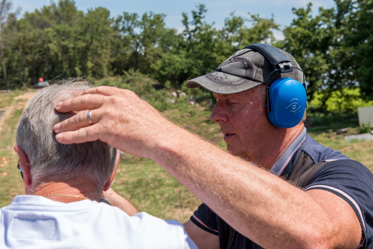 Photo de clients sur les stands de tir lors de leur stage de perfectionnement au tir !